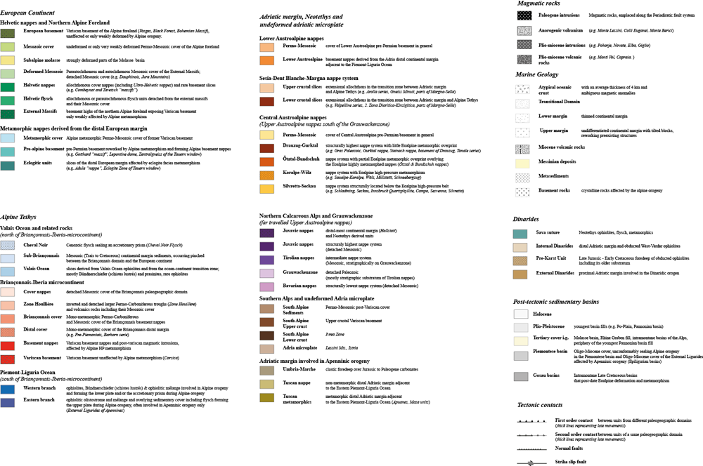 Robert C., Wiederkehr M., Rossi Ph., 2012, Tectonic framework of the Alps, CCGM/CGMW. http://www.geodynalps.org